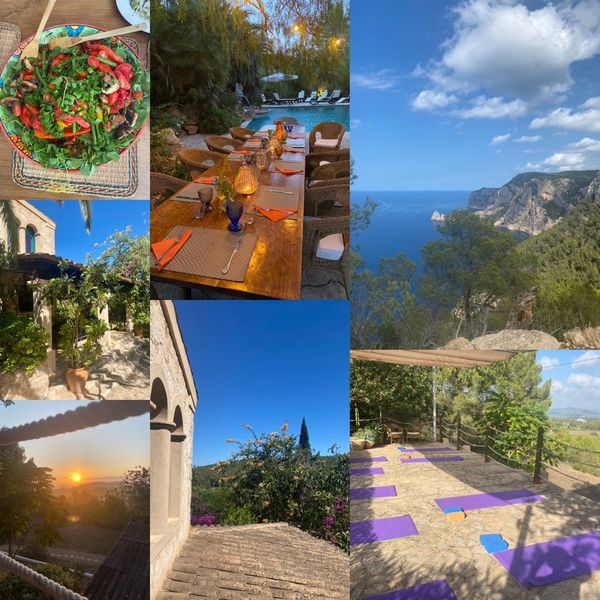 4 night yoga retreats inclusive of 3 vegetarian meals per day and 2 sessions of yoga per day:- 2 hours in the morning and 1 hour sunset yoga. An optional local guided walk by Walking Ibiza https://walkingibiza.com/ is offered as part of the package and massages are available at the house at extra cost.
